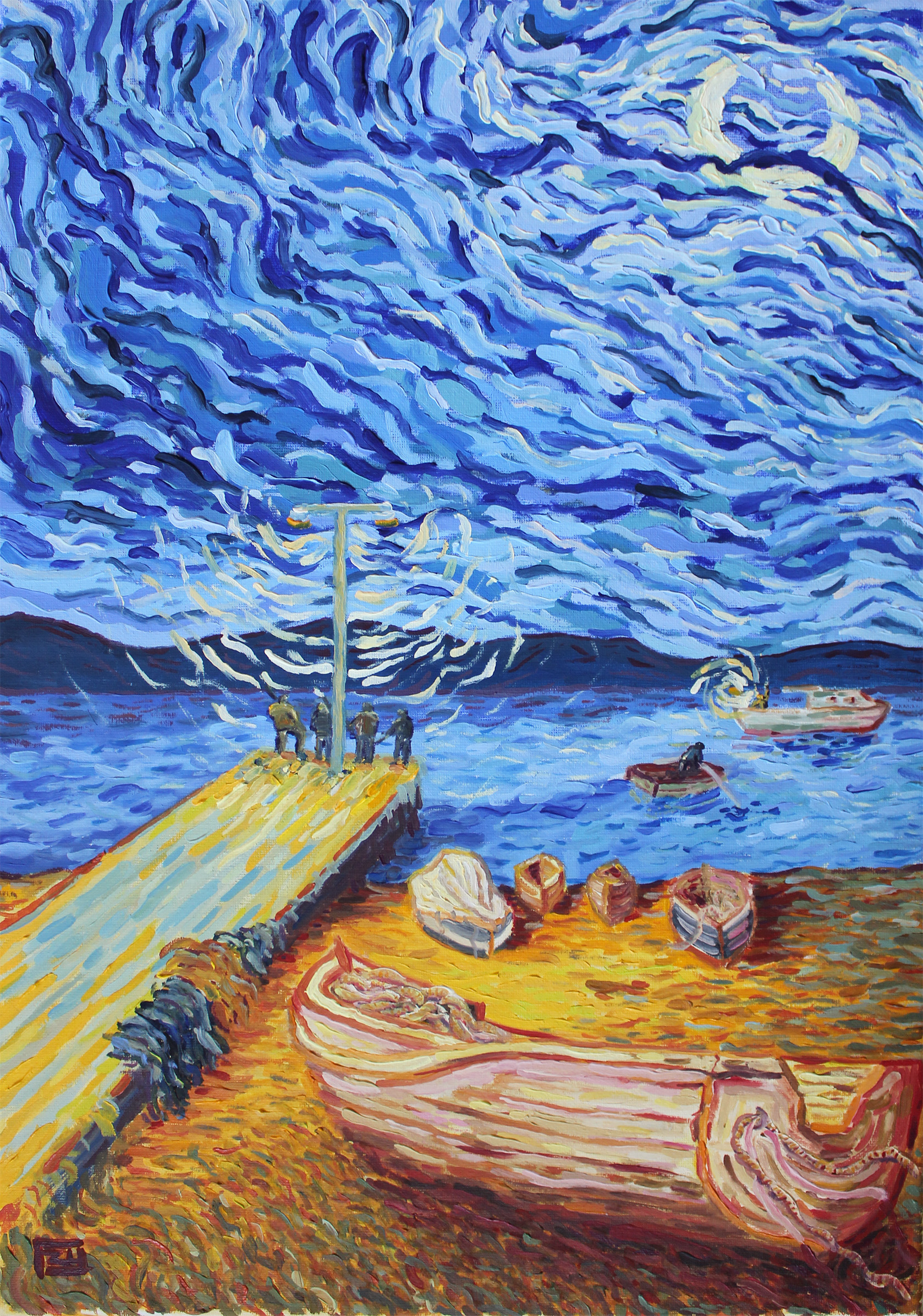 Evening Fishers With Moon 🔴